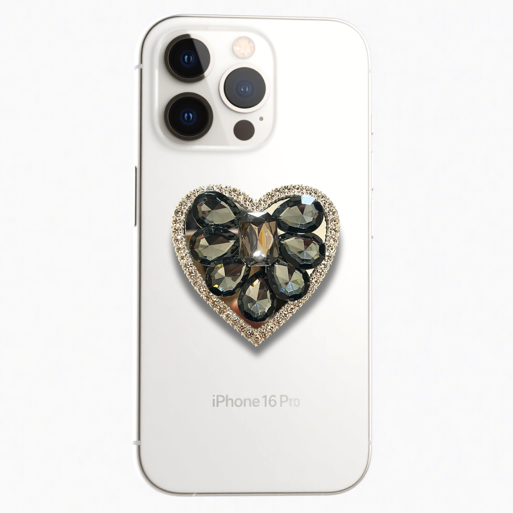 Black Gem Heart Grip Phone Holder